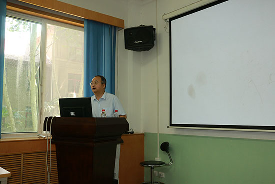 单智伟副院长用轻松诙谐的话语讲述了他本人对第十二次党代会和暑期工作会议精神的理解。之后他通过精确的数据分析,介绍了学院设备资源预约平台的运行情况,并就材料学院网络信息化建设和实验技术中心年假制度设立的进展情况做了汇报。