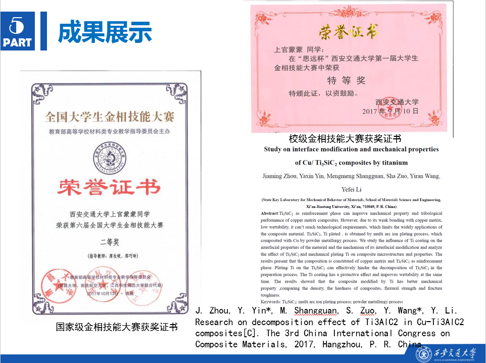 5月23日下午3点,材料学院顺利举行2017年大学生创新训练项目结题验收答辩。本次中期验收共有“Ti对Cu/MAX陶瓷复合材料界面改性研究”、“通过烟煤的微米尺度要素分离实现雾霾和土壤劣化的源头治理”等7个项目参加答辩。各个项目组负责人围绕项目背景、研究内容与方法、研究结果等方面进行了汇报,并向评委展示了标志性成果、展板及经费使用情况。本次答辩共评选出2个优秀项目、3个良好项目及2个合格项目。2017年大学生创新训练项目自2017年5月立项至今,经历了立项、中期验收等考核环节,本次结题验收答辩标志着其圆满完成。