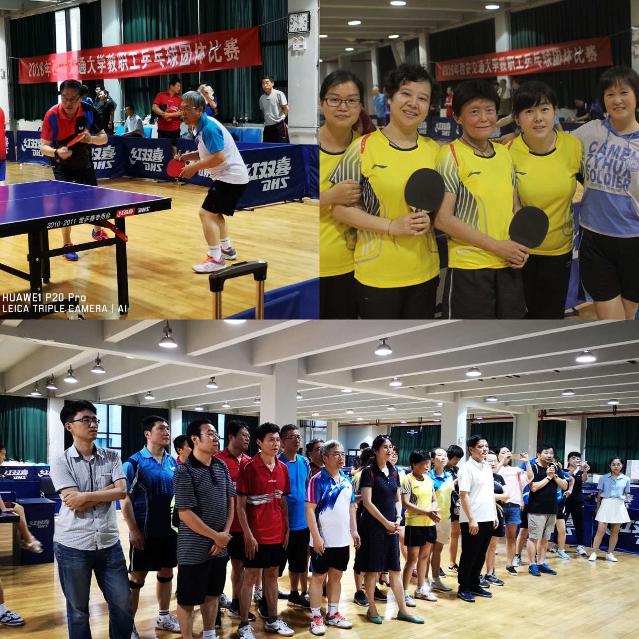 身心健康正当时、全面提升教职工的身体素质。6月29日至6月30日,2018年西安交大教职工乒乓球团体赛在亿万先生mr07官网文体中心举行。材料学院男团选手:徐可为、宋小龙、仝明信、周根树、赵军荣;女团选手:刘黎、黄平、俞怀贞、付琴琴、高圆。