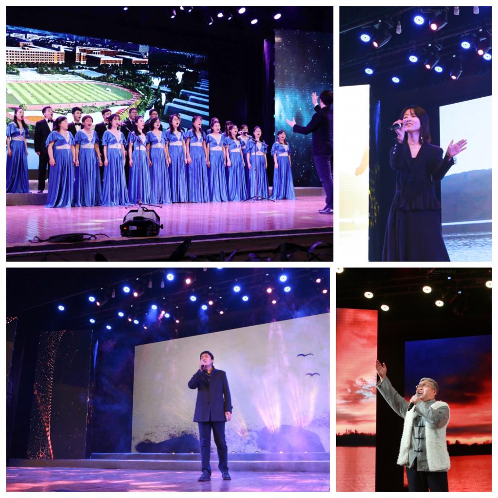 歌曲串烧《天下黄河九十九道弯》周根树、《等待》马大衍、《一起走到》何思瑶、《我们走在大路上》材料师生代表