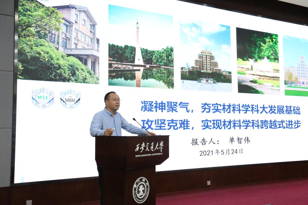 5月24日,材料学院2021届研究生“最后一堂课”暨新校友欢迎会在科学馆101会议室举行。88级校友、陕西斯瑞新材料股份有限公司董事长、西安交大材料学科校友会会长王文斌,81级校友、陕西民乐新都会商城有限公司董事长、西安交大材料学科校友会执行会长李健,88级校友、西交1896孵化器有限公司董事长兼总经理、西安交大材料学科校友会副会长魏长青,88级校友、西安西交一八九六资本管理有限公司执行董事长、西安交大材料学科校友会副会长柯宏斌,09级校友、陕西斯瑞新材料股份有限公司项目经理、西安交大材料学科校友会副秘书长高斌等校友,材料学院院长单智伟、党委书记潘希德、副院长丁向东和王红洁,以及2021届材料学科毕业生和第三届百人明星获奖人员参加本次活动。材料学院副院长马飞主持本次会议。