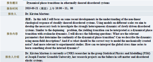博士Kirsten Martens 访问我院并做学术报告,欢迎广大师生届时光临。
