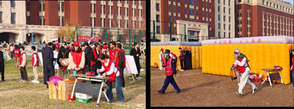培训结束后,赵军荣老师与刘豹虎老师带领同学们前往3号巨构西侧空地开展消防器材灭火演练活动,消防人员有序组织同学们正确使用灭火器进行灭火。